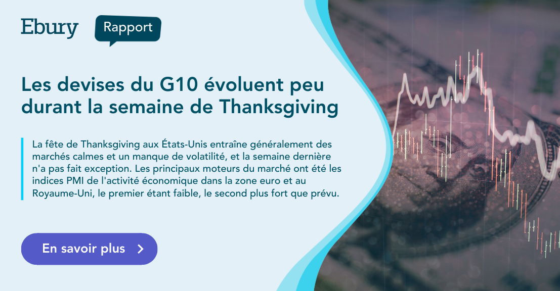La fête de Thanksgiving aux États-Unis entraîne généralement des marchés calmes et un manque de volatilité, et la semaine dernière n’a pas fait exception. Les principaux moteurs du marché ont été les indices PMI de l’activité économique dans la zone euro et au Royaume-Uni, le premier étant faible, le second plus fort que prévu.