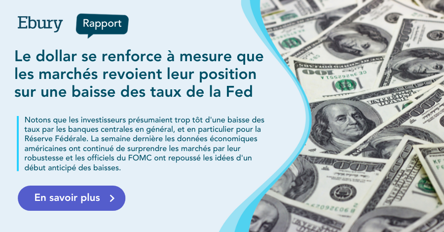 Les marchés des changes ont effectué un virage à 180 degrés depuis le début de l’année 2024, tout comme l’ensemble des marchés financiers. Le rebond obligataire fulgurant observé au cours des dernières semaines de l’année 2023 s’est arrêté net et s’est inversé, en raison de la réduction des anticipations des marchés concernant les baisses de taux d’intérêt de la Réserve Fédérale en 2024.