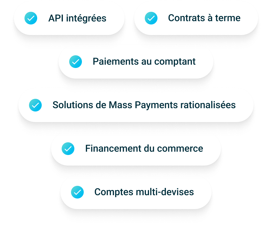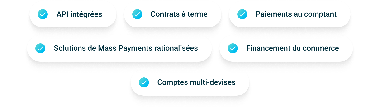 Solutions d'entreprise, intégrées pour les paiements transfrontaliers urgents. Nous fournissons des solutions sur mesure, à la pointe du marché, avec une couverture mondiale des devises pour soutenir la croissance et les ambitions de votre entreprise.